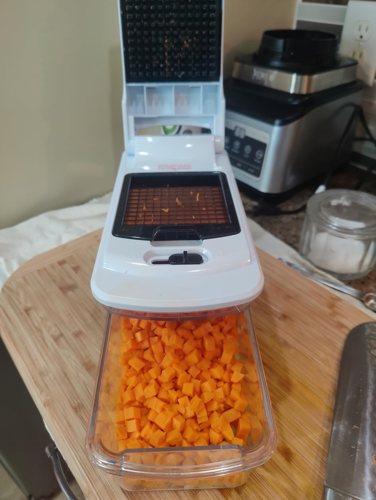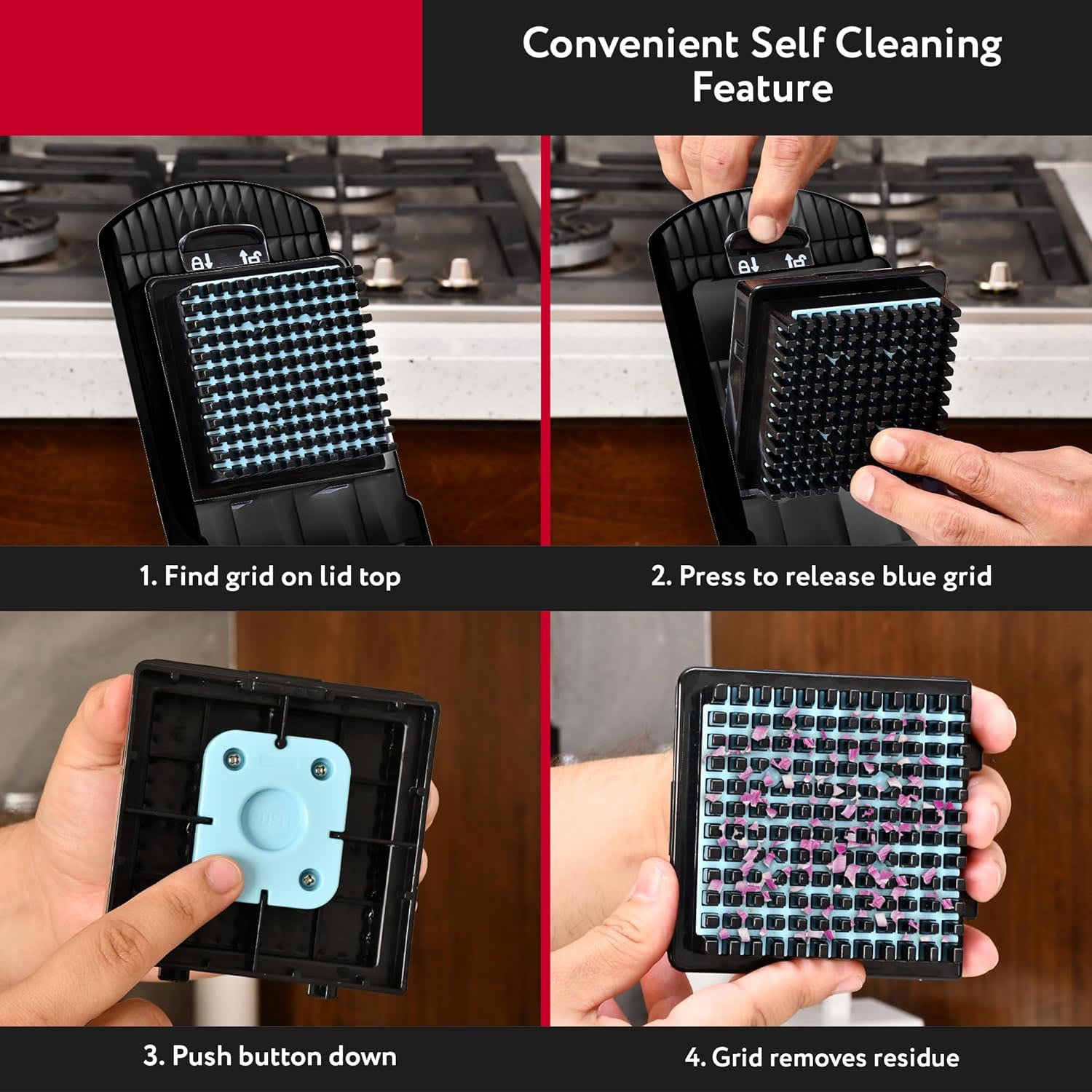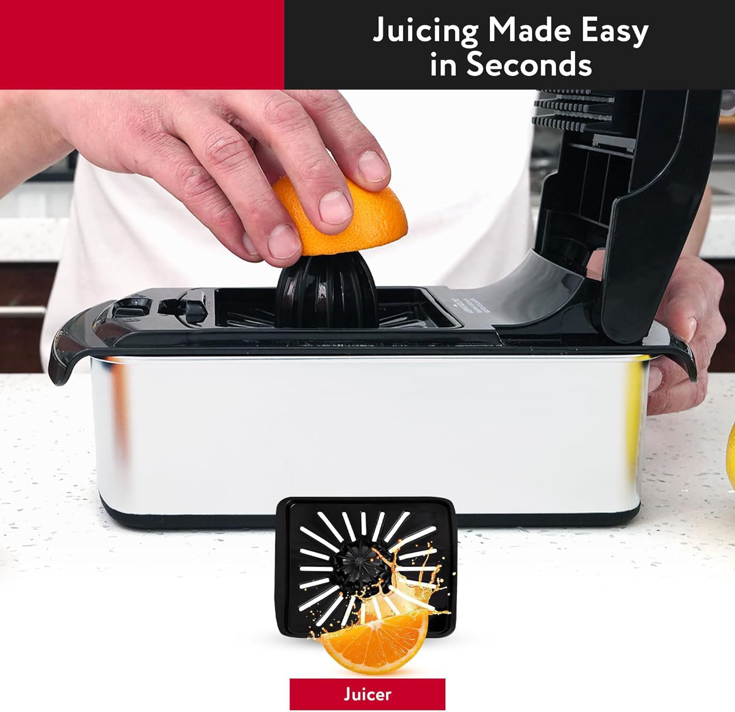 Our 18-in-1 self-cleaning food chopper handles slicing, grating, spiralizing, and fruit squeezing in one go.